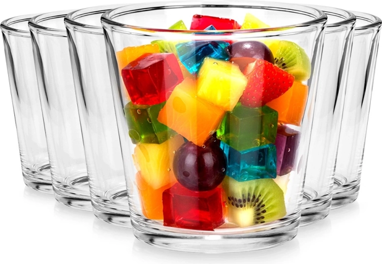 Podawaj stylowo panna cottę, tiramisu, budynie, sałatki owocowe oraz mini przystawki. Uniwersalne szklane pucharki o pojemności 180 ml sprawdzą się w domu, na weselach, w cateringu i na dziecięcych przyjęciach. Przezroczyste szkło podkreśla kolory, fakturę i warstwowanie Twoich deserów.