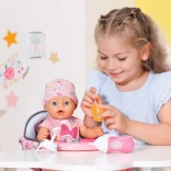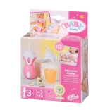 Interaktywna butelka i łyżeczka dla lalek BABY Born to doskonały dodatek do realistycznej zabawy. Zestaw zawiera butelkę z dwoma nasadkami – jedną do picia z efektem dźwiękowym i drugą z łyżeczką do karmienia kaszki. Wystarczy wycisnąć kaszkę przez otwór na dole i butelka jest gotowa do użycia.