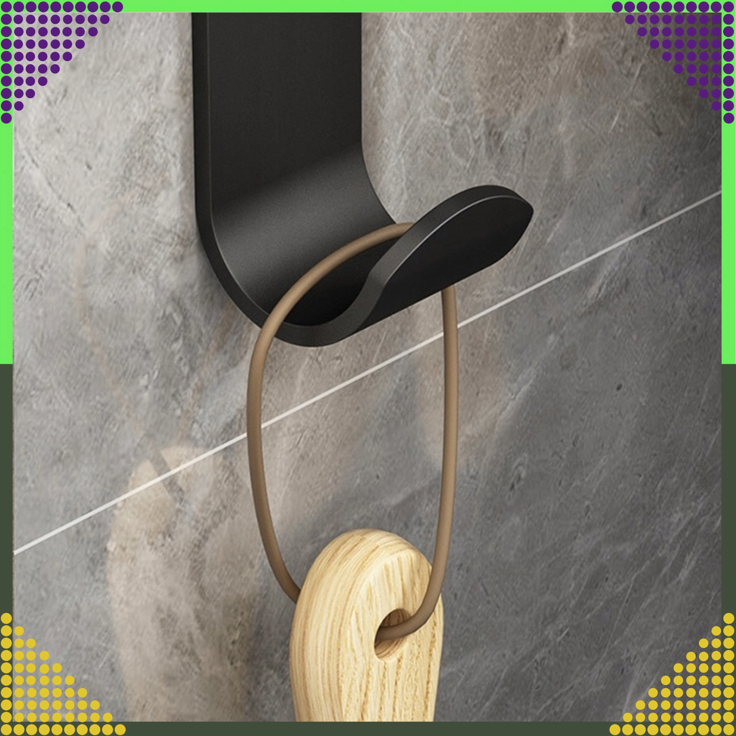 Elegancki ścienny wieszak w stylu loft z czterema obrotowymi ramionami i dolnym haczykiem dla maksymalnego porządku. Dzięki trwałej aluminiowej konstrukcji i matowemu czarnemu wykończeniu oferuje długą żywotność, oszczędność miejsca oraz szybkie schnięcie ręczników.