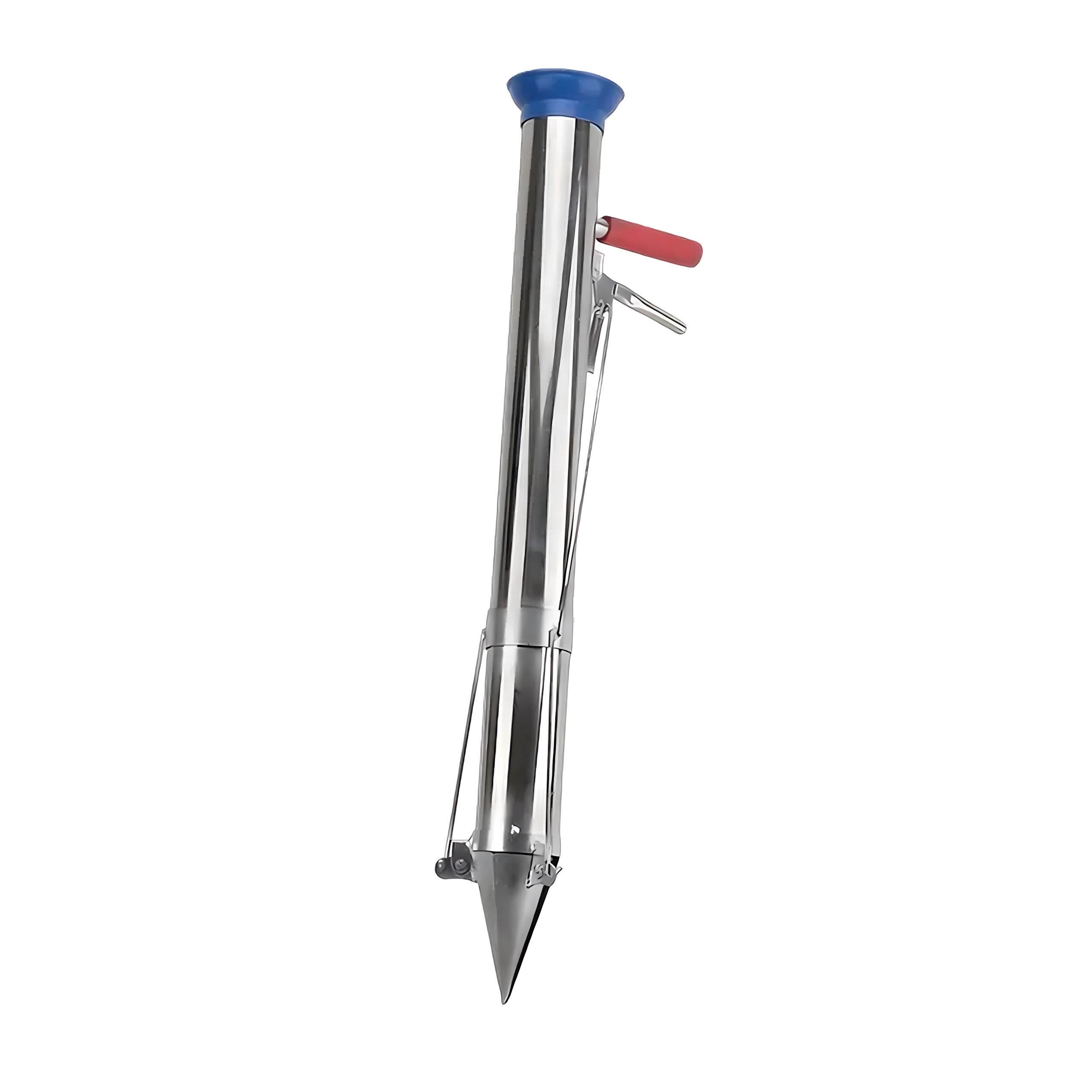 Stożkowa końcówka i cylindryczny korpus tworzą czysty otwór jednym dociśnięciem, wkładasz rozsadę, a dźwignią łatwo uwalniasz glebę z powrotem.