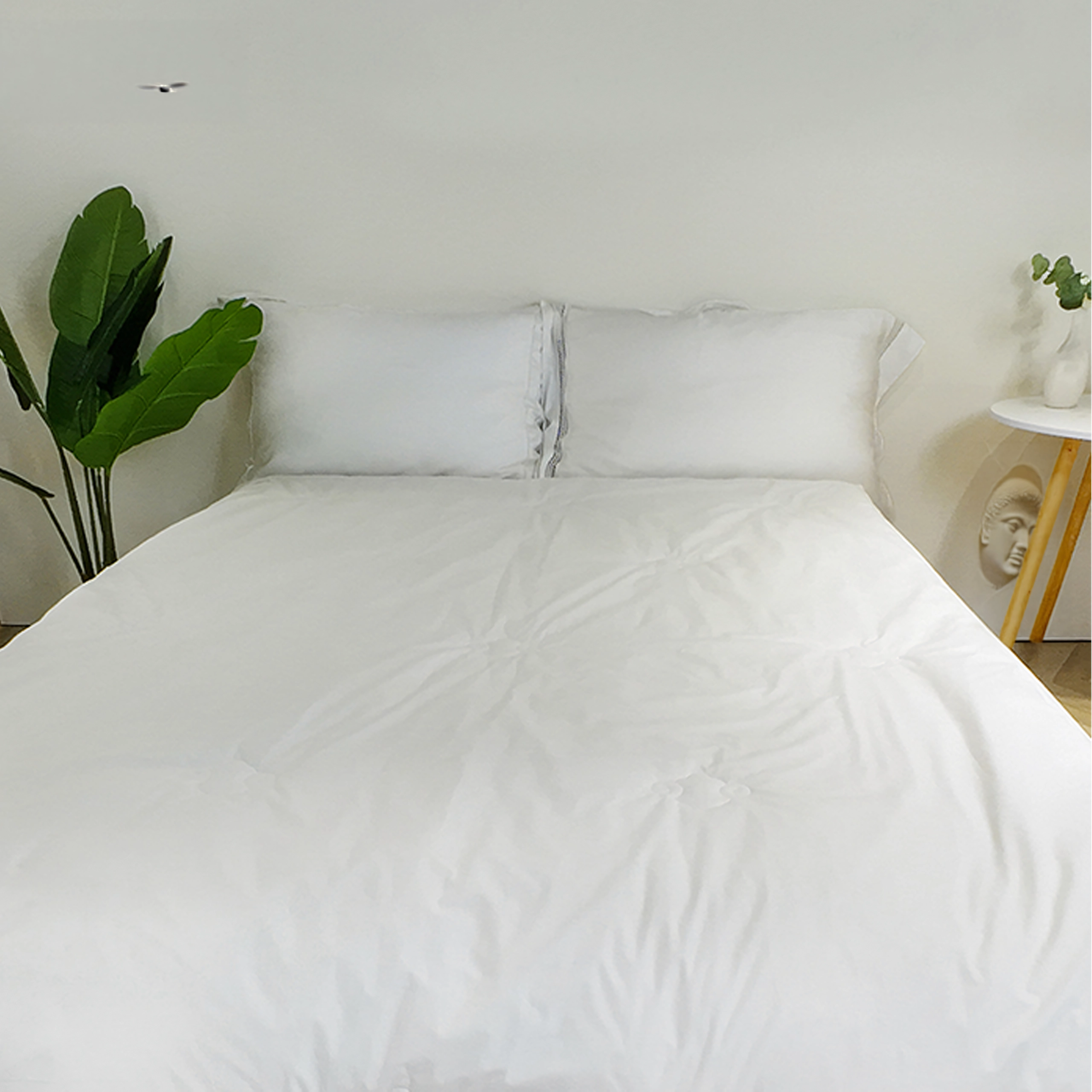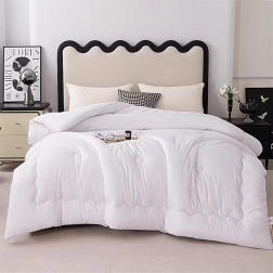 Ta biała całoroczna kołdra łączy w sobie lekkość, ciepło i oddychalność, dzięki czemu poczujesz się pod nią komfortowo bez zbędnego zagrzewania. Hojny wymiar 200 × 220 cm jest idealny na łóżko podwójne i zapewnia wygodę dla dwojga.