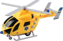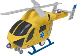 Dzięki napędowi ciernemu zabawa jest łatwa i dynamiczna – wystarczy popchnąć, a śmigłowiec ruszy. Solidne plastikowe wykonanie, kompaktowy rozmiar 20 cm oraz działający sygnał świetlny czynią z niego idealną zabawkę dla małych ratowników.