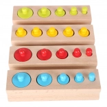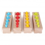 Drewniane kolorowe waleczki pomagają dzieciom zrozumieć wzory i podejmować decyzje o właściwym umieszczeniu.