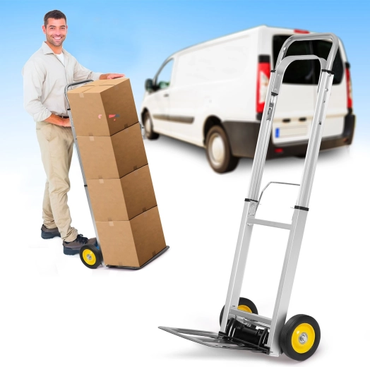 Lekki, a jednocześnie solidny składany wózek ręczny Humberg to idealny pomocnik do sklepu, magazynu, usług kurierskich i domowego warsztatu. Dzięki udźwigowi do 90 kg, teleskopowej rączce i składanej platformie łatwo przewieziesz pudła i cięższy ładunek, a po pracy wózek szybko złożysz do kompaktowych wymiarów.