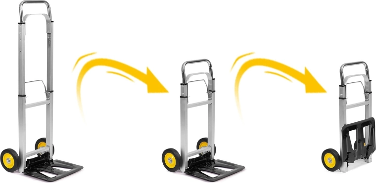 Wózek łatwo złożysz do kompaktowych wymiarów, dzięki czemu mieści się w bagażniku i nie zajmuje miejsca w magazynie. Idealny w podróży i do mobilnej pracy.