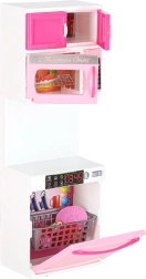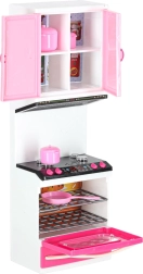 Zestaw obejmuje mikrofalówkę i zmywarkę, kuchenkę z piekarnikiem, witrynkę ze zlewem oraz lodówkę z szufladą. Dzieci cieszą się kompletnym scenariuszem gotowania, pieczenia i sprzątania.
