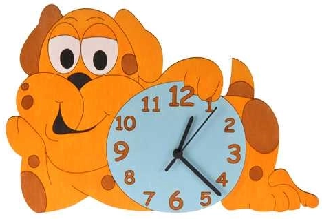 Zabawny dziecięcy zegar z motywem pieska, który pomaga dzieciom zapoznawać się z czasem. Ręcznie malowany i ekologicznie wykonany, idealny do powieszenia na ścianie.