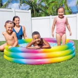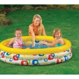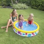 Nadmuchiwany basen INTEX z wesołym, kropkowanym nadrukiem to idealny wybór do dziecięcych wodnych zabaw w ogrodzie. Dzięki trzem niezależnym pierścieniom basenik jest stabilny i wygodny, a jego kompaktowe wymiary 147 × 33 cm pasują niemal wszędzie.