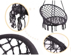 Ciesz się kołysaniem i odpoczynkiem o każdej porze dnia. Przestronna okrągła podstawa o średnicy 80 cm zapewnia dużo miejsca do wygodnego siedzenia, tapicerowane poduszki i komfortowe oparcie dbają o maksymalny relaks. Nowoczesny design z frędzlami tworzy przyjemną atmosferę w domu i na zadaszonym balkonie.