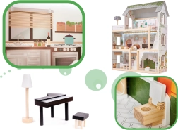 Zabawa domkiem rozwija dziecięcą wyobraźnię, małą motorykę oraz umiejętności społeczne dziecka.