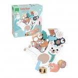 Gra balansowa Miś Eddy w delikatnych skandynawskich tonach zapewnia świetną zabawę dla dzieci i rodziców. Dzieci rzucają kolorową kostką i zgodnie z wylosowanym kolorem dokładają drewniane elementy na kołyszącego się misia. Gra trenuje zręczność, koncentrację i równowagę, a także wspiera cierpliwość i logiczne myślenie.
