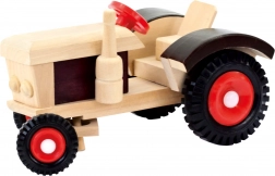 Drewniany traktor to nie tylko zabawna, ale też edukacyjna zabawka, która wspiera naukę alfabetu. Przyczepa jest załadowana kolorowymi klockami z literami, co pobudza dziecięcą wyobraźnię i kreatywność. Drewniana konstrukcja zapewnia długą żywotność i stabilność zabawki, czyniąc ją idealną do zabawy w domu i na zewnątrz.