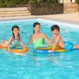 Wysokiej jakości PVC gwarantuje trwałość i długą żywotność, a deska jest jednocześnie bardzo lekka i poręczna – waży tylko 0,42 kg i mieści się do każdej torby plażowej. Wesoła, żywa kolorystyka motywuje dzieci do ruchu i zabawy w basenie, nad morzem i nad jeziorem. Dla spokoju rodziców w zestawie znajduje się łatka naprawcza.