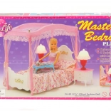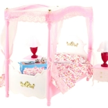 To dopracowane w szczegółach łóżko z baldachimem zamieni pokoik lalek w przytulne królestwo. Dzięki bogatym akcesoriom i funkcjonalnym lampkom dzieci stworzą wiele realistycznych scenek i będą się świetnie bawić. Wysokiej jakości plastikowe wykonanie zapewnia trwałość i łatwą pielęgnację.