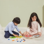 W zestawie znajduje się 4× drewniana plansza pawia, 36 krążków w 6 kolorach, 20 dwustronnych kart z zadaniami oraz 2 kostki z kolorami. Gra wspiera samodzielną i zespołową aktywność oraz świetnie przygotowuje do edukacji przedszkolnej.