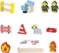 W opakowaniu znajduje się wszystko, czego mali strażacy potrzebują: pojazdy, figurki i tematyczne akcesoria. Kompaktowe wymiary pozwalają na zabawę na stole i w pokoju dziecięcym, a zestaw łatwo schować z powrotem do pudełka.