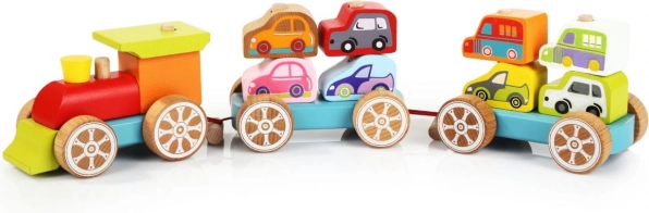 Pociąg z autami drewniana układanka