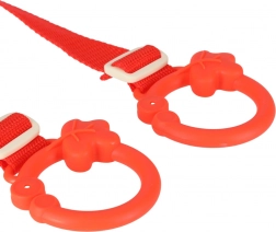 Zabawka łatwo mocuje się do tyłu siedzenia za pomocą plastikowych pierścieni, które zapewniają stabilność i bezpieczeństwo.