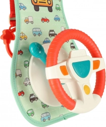Ta interaktywna kierownica do auta, zaprojektowana tak, by zapewnić rozrywkę Twojemu dziecku podczas podróży, zawiera kolorowy panel z kierownicą i bezpiecznym lusterkiem. Zawiera cztery przyciski i sensoryczną dźwignię, które oferują dźwięki i kolorowe światła, pobudzając dziecięcą wyobraźnię i sensoryczne doznania.