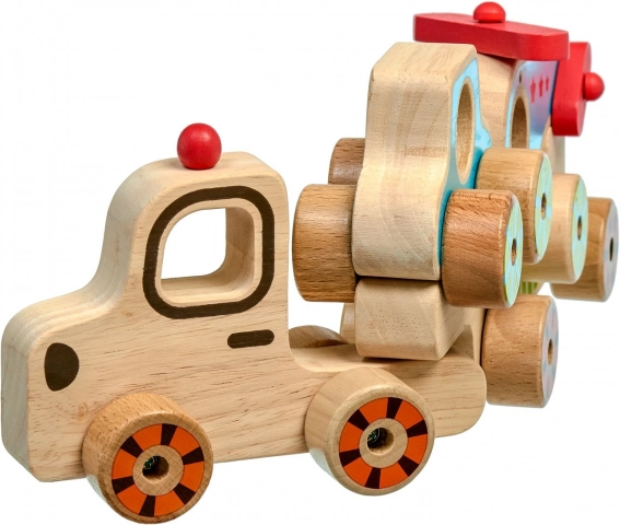 Ruch kół, nakładanie i układanie elementów rozwija chwyt, koordynację ręka–oko i cierpliwość – idealne do pierwszych zabaw konstrukcyjnych i transportowych.