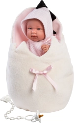 Polarowy śpiworek przypomina jajo dinozaura i jest idealny do utrzymania ciepła i komfortu lalki.