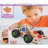 Odkryj kreatywny świat klocków EICHHORN CONSTRUCTOR. Ten drewniany zestaw oferuje 3 modele w 1 – bolid i dwa różne auta wyścigowe. Dzięki 35 elementom z bukowego drewna oraz kolorowym plastikowym łącznikom dzieci rozwijają małą motorykę, myślenie przestrzenne i kreatywność. Wysoka jakość Made in Germany, w 100% drewno z certyfikatem FSC oraz bezpieczne farby na bazie wody zapewniają bezpieczną i angażującą zabawę od 3. roku życia.