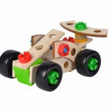 - 35 elementów: klocki, listwy, koła, śruby i nakrętki