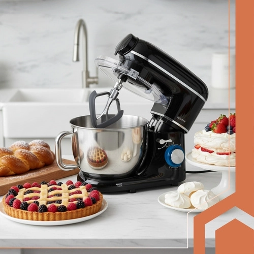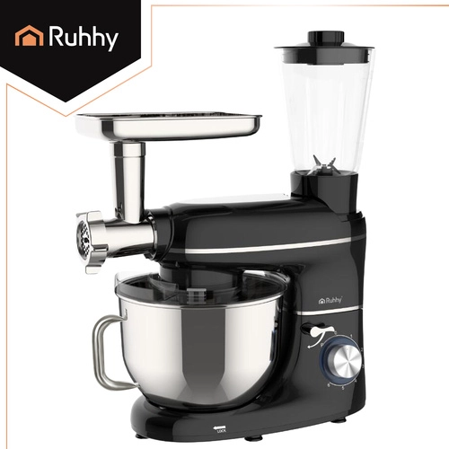 RUHHY 3w1 to wszechstronny pomocnik do nowoczesnej kuchni. W jednej stabilnej podstawie otrzymujesz planetarny robot do ciast i kremów, szklany blender do koktajli i zup oraz maszynkę do mięsa z trzema sitami do mielenia, nadziewek i domowych kiełbas. Wydajny silnik 1500 W z miedzianym uzwojeniem i metalowa przekładnia zapewniają niezawodną pracę nawet przy gęstych mieszankach.