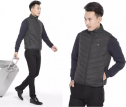 Kamizelkę można podłączyć do powerbanku przez USB, aby uzyskać natychmiastowe ogrzewanie, z trzema poziomami intensywności w dziewięciu strefach na całym tułowiu.