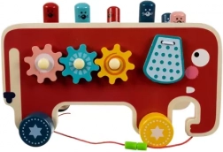 Drewniana zabawka dla dzieci w kształcie słonia, która rozwija zdolności motoryczne i logiczne myślenie. Oferuje wiele aktywności, które zajmą dzieci na długie godziny.