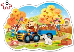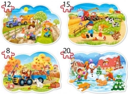 Ten zestaw 4w1 oferuje cztery oddzielne puzzle w jednym opakowaniu, idealne do stopniowego zwiększania trudności. Po ułożeniu powstają kolorowe obrazki z motywami farmy, zwierząt, traktorów i dziecięcych zabaw, każdy o wymiarach 28 × 19,5 cm. Wysokiej jakości nadruk i solidne elementy gwarantują długą żywotność i radość z wielokrotnego układania.