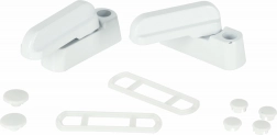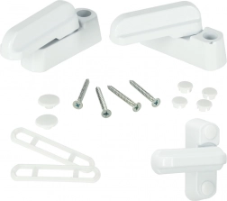 2× zabezpieczenie, 2× plastikowa podkładka, 4× śruba, 4× zaślepki śrub
