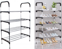 Stojak na buty posiada elastyczną konstrukcję, która pozwala łatwo dodawać lub usuwać poziomy w zależności od potrzeb.