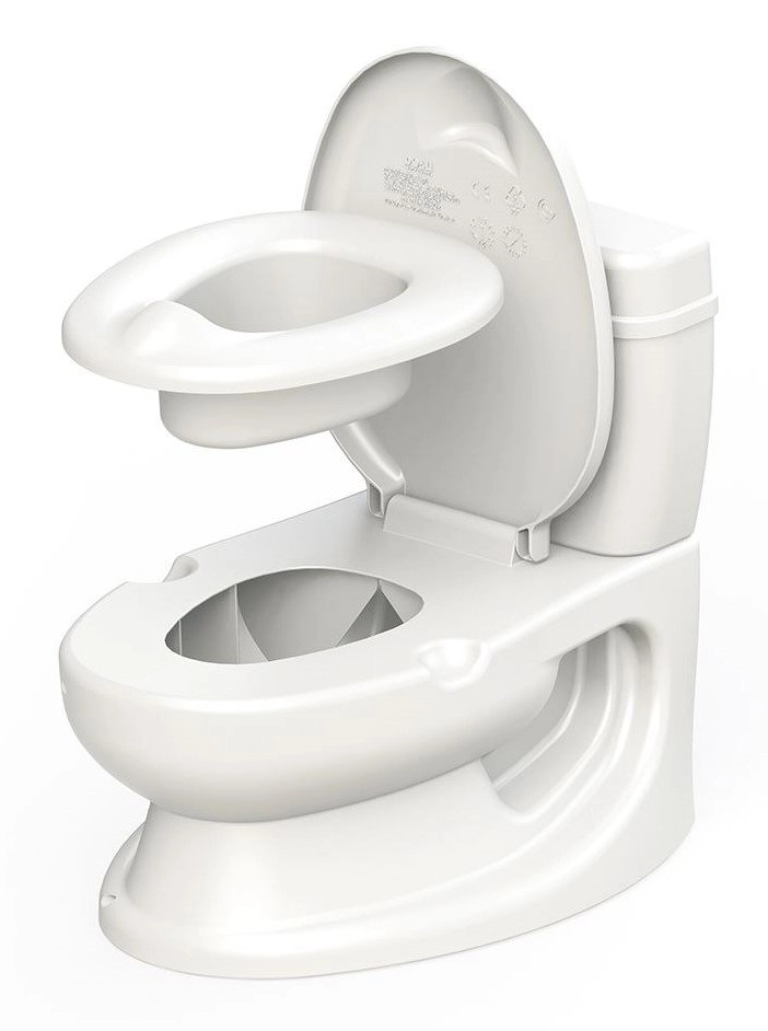 Przycisk w górnej części nocnika wydaje autentyczny dźwięk spłukiwania, który bawi dzieci i motywuje do regularnego korzystania z toalety.