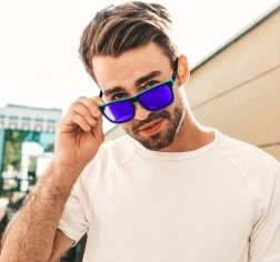 Unisex čierno‑modrý dizajn so zrkadlovým efektom skiel ľahko skombinujete s akýmkoľvek štýlom. V sade získate praktické mäkké puzdro so sťahovacou šnúrkou a mikrovláknovú handričku na šetrné čistenie.