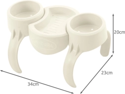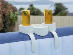 Šikovný doplnok pre pohodové chvíle vo vírivke: dvojitý držiak nápojov so stredovou táckou. Ponúka dve kruhové priehradky na poháre, plechovky či fľaše a uprostred praktické miesto na drobnosti – okuliare, smartfón alebo malé pochutiny. Odolné prevedenie z PP/ABS materiálu je pripravené na vodu aj slnko.