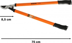 Vďaka ergonomickým gumovým rukovätiam sedí nástroj isto v ruke a minimalizuje únavu pri dlhšej práci. Celková dĺžka 750 mm umožní dosiahnuť aj na ťažšie prístupné miesta a zaistí lepšiu kontrolu nad strihom.