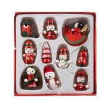 Obohaťte svoju vianočnú výzdobu o sadu 10 kusov drevených ozdôb: drevená hviezda, Mikuláš, zvonček a ďalšie motívy inšpirujúce zimné nálady.