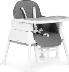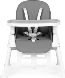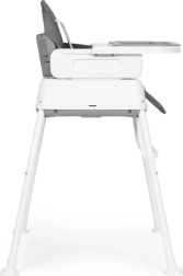 Kreslo je výškovo nastaviteľné. Nohy a podnožku môžete jednoducho odňať, vďaka čomu vysoké kreslo možno premeniť na nižšiu stoličku. Jedinečným prvkom stoličky je jej sedák, ktorý môžete využiť pri upevnení na stoličku v jedálni alebo kuchyni. Súčasťou sady sú špeciálne upevňovacie popruhy na sedák a operadlo klasickej stoličky.