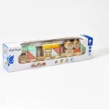 Tento ťahací drevený vláčik ponúka skvelú hračku pre rozvoj zručností detí. Jeho jednotlivé časti sú vyrobené z dreva a môžu byť ľahko vyberané a znovu skladané podľa ľubovôle, čo napomáha rozvoju detskej predstavivosti a koordinácie. Každá časť nákladu je originálna ako tvarovo, tak farebne, čo podporuje rozvoj farebného vnímania.