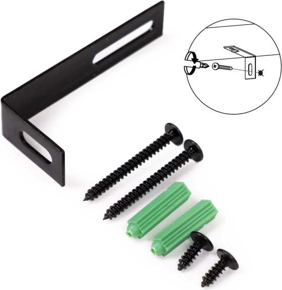 Súčasťou balenia je uhelník a skrutky na ukotvenie police k stene. Zvýšená bezpečnosť v domácnostiach s deťmi.