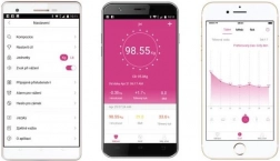 - 6 sledovaných parametrov: hmotnosť, telesný tuk, voda v tele, BMI, BMR, metabolický vek