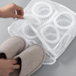 Hustá sieťovina a zips chránia obuv pred odermi a nárazmi, zároveň bránia poškodeniu bubna práčky.