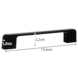Špecifikácia produktu zahŕňajú čiernu matnú farbu, hliníkový materiál a dva montážne otvory s rozstupom 96 mm. Rozmery sú 10,4 x 2,2 x 1,2 cm, čo zaisťuje pevnú a stabilnú konštrukciu pre dlhodobú životnosť.