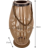 Lucerna Gardlov predstavuje dokonalú harmóniu medzi prírodným bambusom a moderným dizajnom. Prvotriedne bambusové lamely dodávajú nielen estetický vzhľad, ale aj trvanlivosť. Sklenený držiak vnútri poskytuje bezpečné miesto pre sviečku, chráni plameň pred vetrom a vytvára nádhernú a romantickú atmosféru.