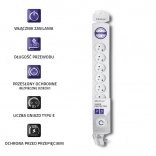 Jedna zásuvka, mnoho možností! Potrebujete pripojiť niekoľko zariadení k jednému zdroju energie a udržať tak poriadok v kábloch napríklad pod stolom, za televíziou alebo v kuchyni? Prehľadná a bezpečná voľba je prepätová ochrana. Získajte istotu a ochranu pre vaše zariadenia.