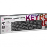 Kancelárska klávesnica Defender Element v elegantnej čiernej farbe ponúka plnohodnotné rozloženie, vystuženú odolnú konštrukciu a nastaviteľný sklon pre pohodlné písanie; vďaka plug & play funguje bez ovládačov a plochá konštrukcia šetrí miesto na stole.