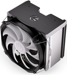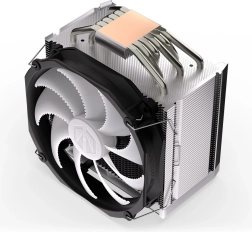 Šesť masívnych heatpipe a precízne opracovaná základňa efektívne odvádzajú teplo priamo z procesora. Ventilátor s vlnitými hranami lopatiek znižuje psychoakustický šum a ponúka voliteľný semi‑passive chod pre absolútne ticho pri nízkej záťaži.