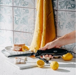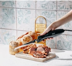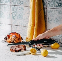 Elektrický nôž Camry Premium je navrhnutý tak, aby poskytoval pohodlie a bezpečnosť pri manipulácii s potravinami. Vďaka dvom rôznym čepeľam z nerezovej ocele ľahko nakrájate rôzne produkty ako mäso, chlieb alebo zeleninu. Čepeľ je odolná voči korózii, čo zabezpečuje dlhú životnosť používania.