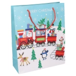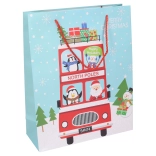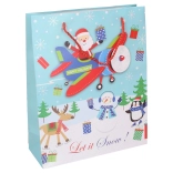 Štýlová vianočná darčeková taška v strednej veľkosti na jednoduché a elegantné zabalenie darčekov. Kvalitný papier, pevné ušká a štyri sviatočné motívy dodajú vašim darčekom čaro Vianoc.